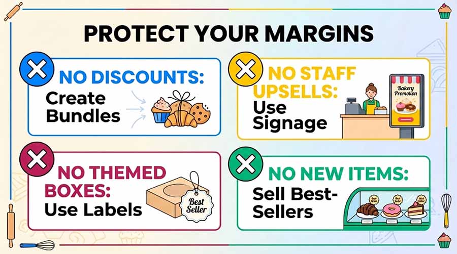 Build bundles that add value instead of slashing margins. Pair a cupcake with a card, combine cookies with a small chocolate box, or offer a mini cake with branded packaging. Customers see more for their money without you losing profit on individual items.