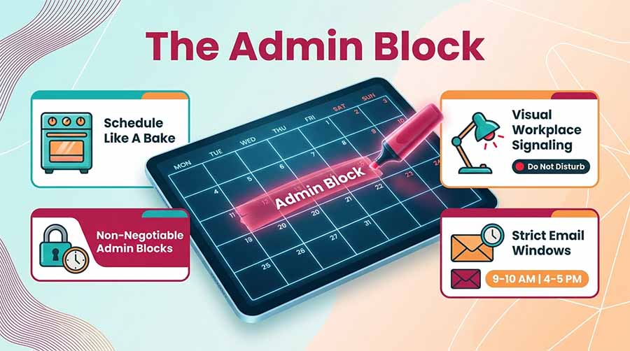 Treat administrative work like a baking session. It gets scheduled, protected, and completed.