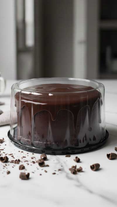 This cake must be stored refrigerated due to its heavy cream content, giving you a shelf life of up to two weeks when properly sealed. The finished cake can reach 4 to 5 inches in height with all those ganache layers and truffle filling, so proper packaging matters. Keep your chocolate truffle cake retail-ready in our crystal-clear 10-inch container with extra-high dome—the 5½-inch dome height prevents crushing while the airtight seal maintains bakery-fresh moisture from display case to customer's table. The black base and stackable design make cooler storage efficient while keeping presentation professional.