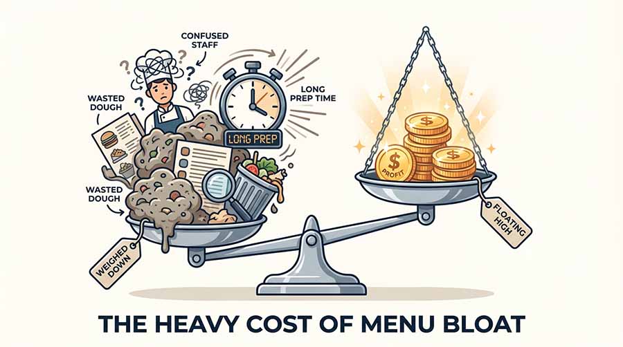 Let's start with the obvious: every item on your menu costs you something. Ingredient inventory, staff training time, packaging formats, recipe testing, shelf space. When you're running 50 SKUs, half of them are probably breaking even or worse.