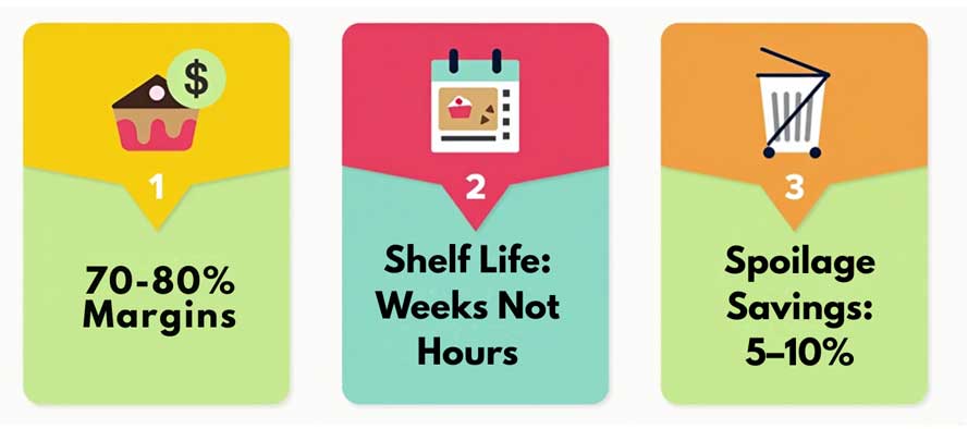 Let's get real about the numbers. Traditional desserts might look gorgeous in your case, but every unsold slice is money down the drain. Meanwhile, that individually wrapped brownie? It's got a shelf life measured in weeks, not hours.