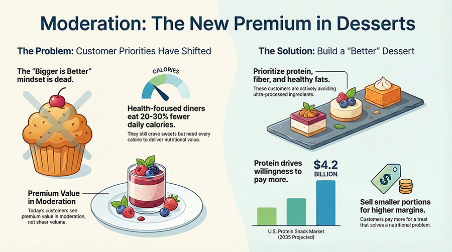 These customers seek treats high in protein, fiber, and healthy fats. They're cutting ultra-processed items. The old "bigger is better" mindset is dead. They see value in moderation, not volume.