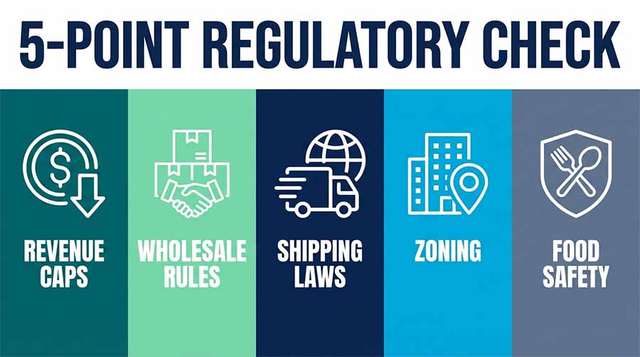 Check your state's actual limits before you assume you can scale from home. Some states ban wholesale from home kitchens. Some allow shipping; others don't.